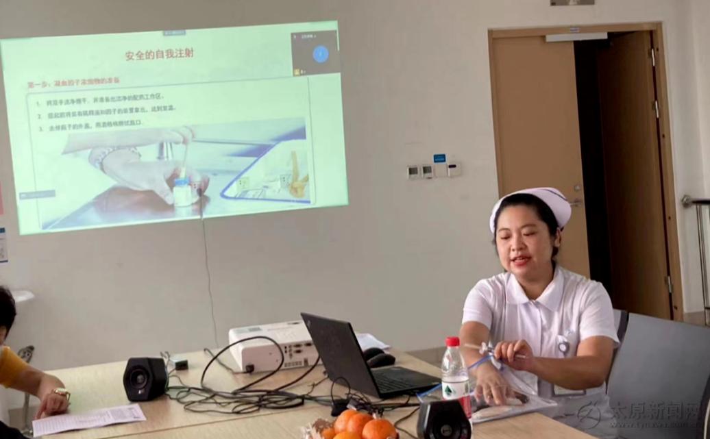 护士长赵璐为大家介绍了《自我注射的安全注射方法及技巧》,内容包含静脉注射规范化流程以及如何选择血管、如何避免反复穿刺。