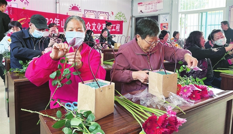 重阳节临近,10月19日,新城街道东方社区组织插花活动,邀请了辖区内花店的专业花艺师现场教学指导,老人们在老师的指导下,对花材进行修剪、整枝、弯曲成各种造型,一朵朵不同品种、不同色彩的鲜花汇聚成美丽花篮,随后将花篮送给社区年长的老党员,表达节日祝福。