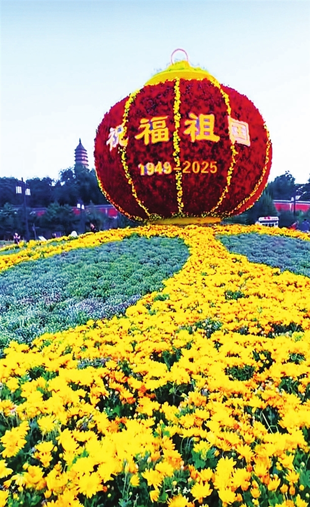 双塔公园立起祝福祖国巨型花坛