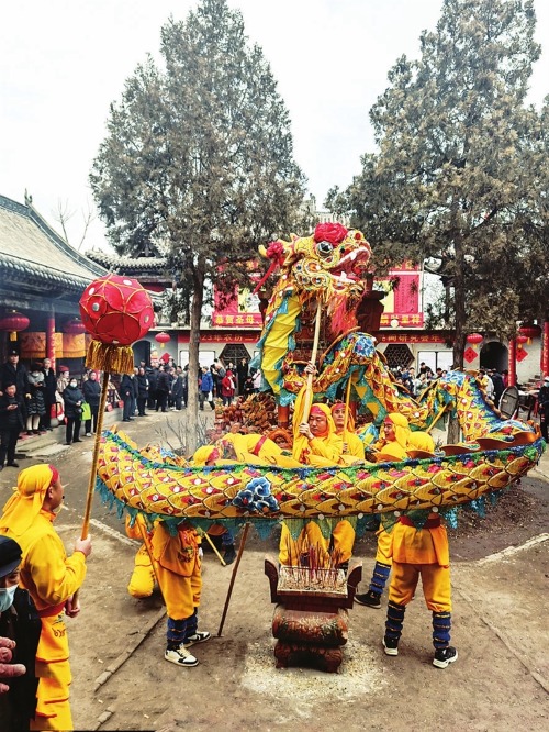 龙天庙会分为“二月二祭龙”“七月初五迎龙”“九月十五谢龙”三部分,其中以二月二庙会最为隆重。它不仅延续着祈求风调雨顺的美好寓意,更成为连接古今的文化纽带。正如晋阳文化研究会姚富生会长所言:“这些鲜活的民俗活动,承载着千年的文化记忆,是流动的非物质文化遗产。”