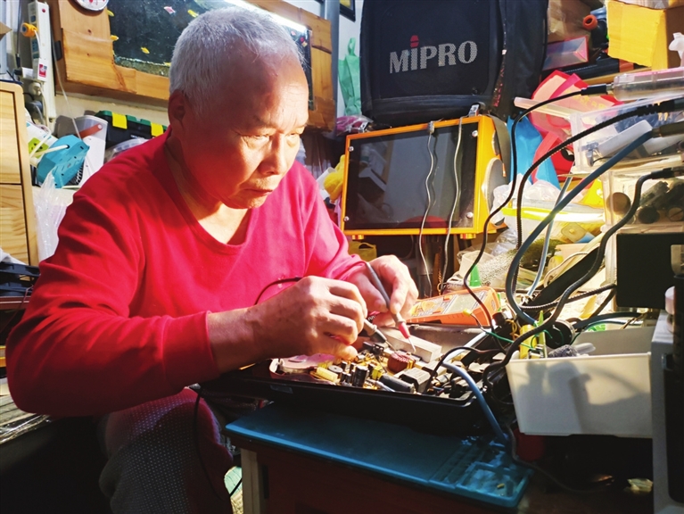 10月28日下午,在双西公交大院见到何森君时,他刚为居民修好一台电磁炉。身边围着的几位居民纷纷夸赞:“何师傅真是我们身边的‘活雷锋’。”退休前,何森君是公交集团的一名员工,精通电工技术。2008年退休后,他发现小区里很多老人不会修电器,往往一个小故障就要找人花钱维修,既费钱又费心。“我当时就想,我懂维修,为什么不帮大家做点事呢?”何森君说,“远亲不如近邻,助人为乐、与人为善,能用自己的手艺帮大家解决实际困难,我心里特别充实。”
