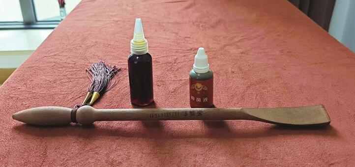 对于药棒,蔚俊康也进行了改良,选用十年以上的老桃木,并设计出独特造型,将棒头制成一面凸、一面凹、两侧弧面,使之能均匀灵活地拍打到人体不同部位。因用起来得心应手,药棒被称为“如意棒”。