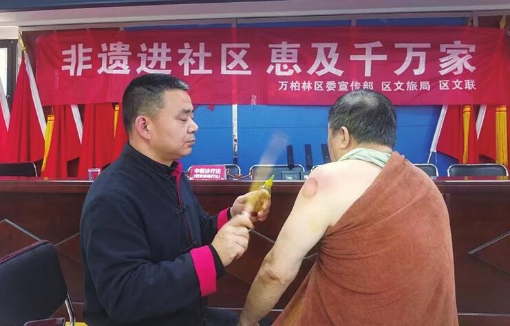 “清代编撰的医学丛书《医宗金鉴》,首次明确记载了这种拍打疗法。”出身中医世家的蔚俊康说,《医宗金鉴》称之为“振梃疗法”,“振即振动拍打,梃即木棒也……用此梃微微振击其上下四旁,使气血流通,得以四散,则疼痛减轻,肿硬见消也。”