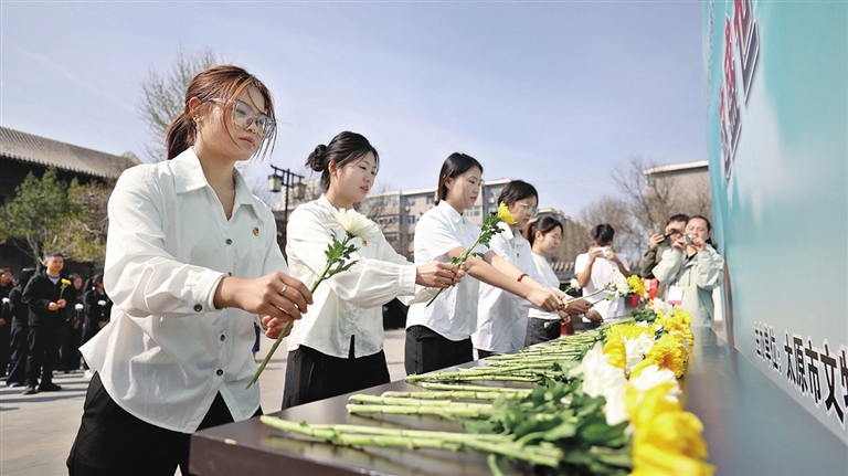 4月2日,由太原市文物局主办的“缅怀先烈志,共铸中华魂——这盛世如您所愿”清明节主题活动在山西国民师范旧址革命活动纪念馆举行,来自党政机关、大中小学校及社会各界的300余人参加活动。郭苑甫 摄
