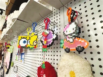 五颜六色的塑料小圆柱,在镊子的起落间排列组合,经过高温熨烫,便化作一件件精美的像素风工艺品。